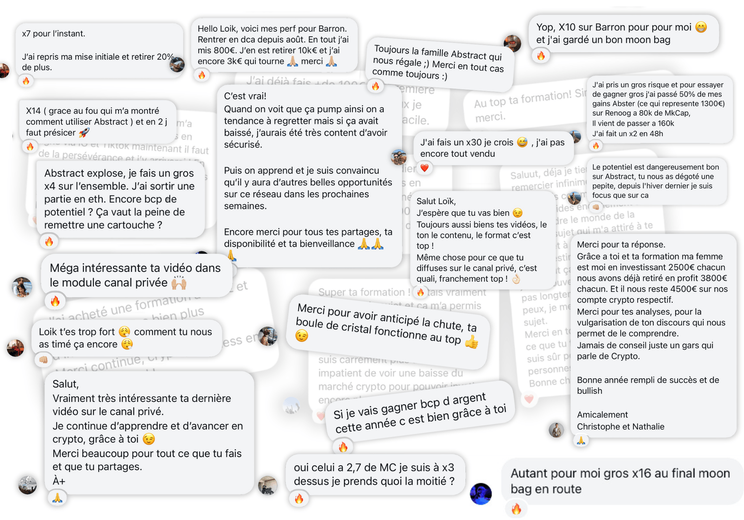 Les 8 modules t'aideront à découvrir le monde des cryptos petit à petit, on parlera de comment acheter tes premières crytpos jusqu'aux dernières opportunités de 2025 qui nous ont permis de trouver des crytpos qui ont fait plus de x40 et x80 !