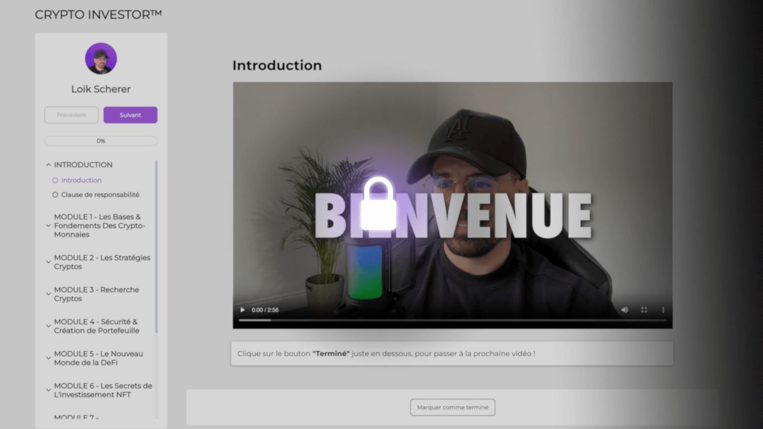 4 autres modules supplémentaires ! On parlera des NFT, de la finance décentralisée ainsi que les bots à utiliser afin d'investir de manière simple et rapide juste avec ton smartphone. Tu auras aussi accès à toutes mes nouvelles vidéos / mises à jours gratuitement.